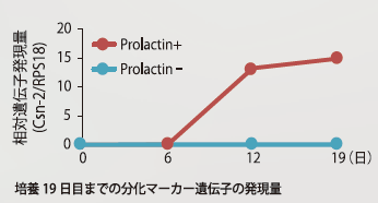 Prolactin添加により分化マーカー遺伝子の発現が上昇し、アテロコラーゲンが乳腺オルガノイドの培養や分化に有用な基材であることが示された。なお、アテロコラーゲンは手頃な価格かつ細胞由来の夾雑物が含まれず、明確な結果の評価が可能である。(製品よりもやや濃度の高い0.5%のアテロコラーゲンゲルを使用した社内データ)